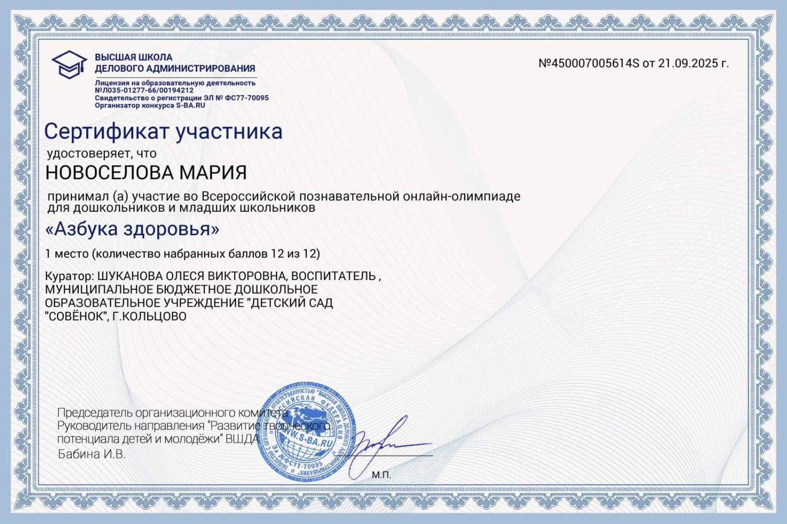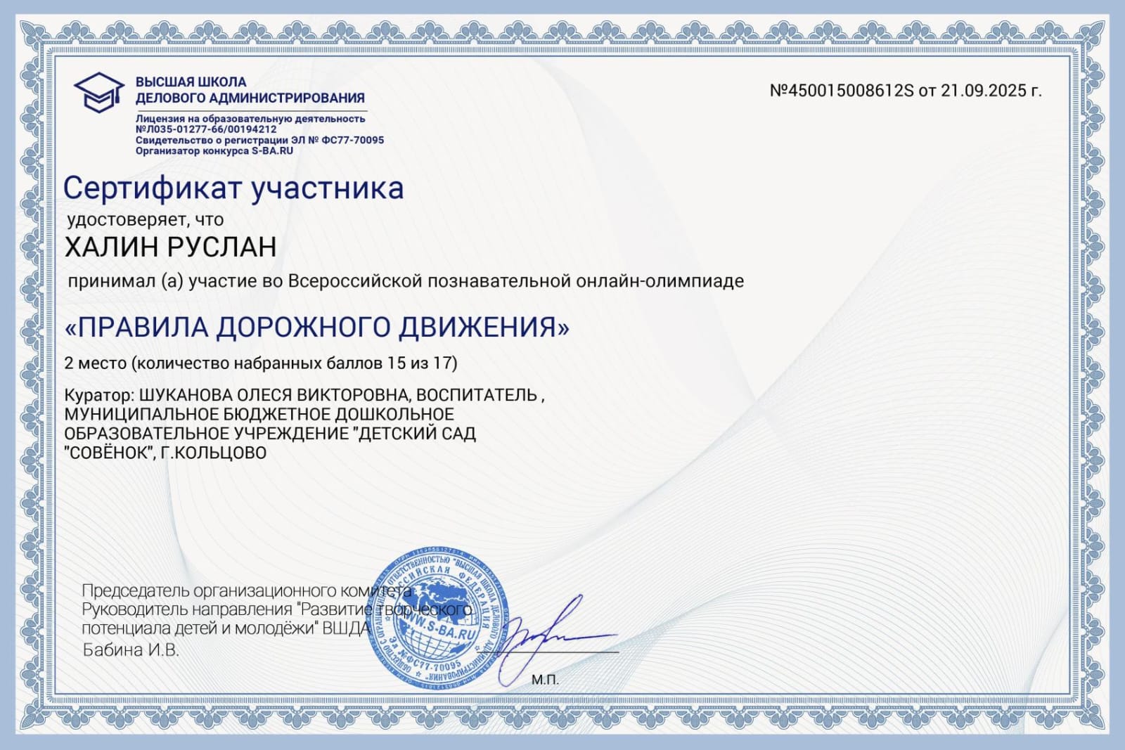 Сертификат участника