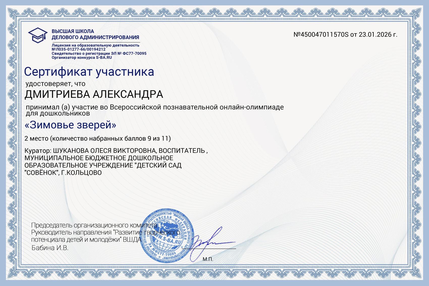 Дмитриева Александра